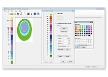 Light amounts measured are illustrated in a graph by colours. Various settings, such as scale type (log scale, equal magnification scale), upper and lower limits of scale bars, intervals, and colour, can be freely set based on measurement condition