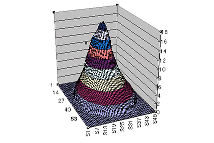Results of partial measurement (rectangle) can be output in text data. Using Excel to graph the results—as shown on the right—makes it possible to see the light amount distribution in a way that is easy to understand.